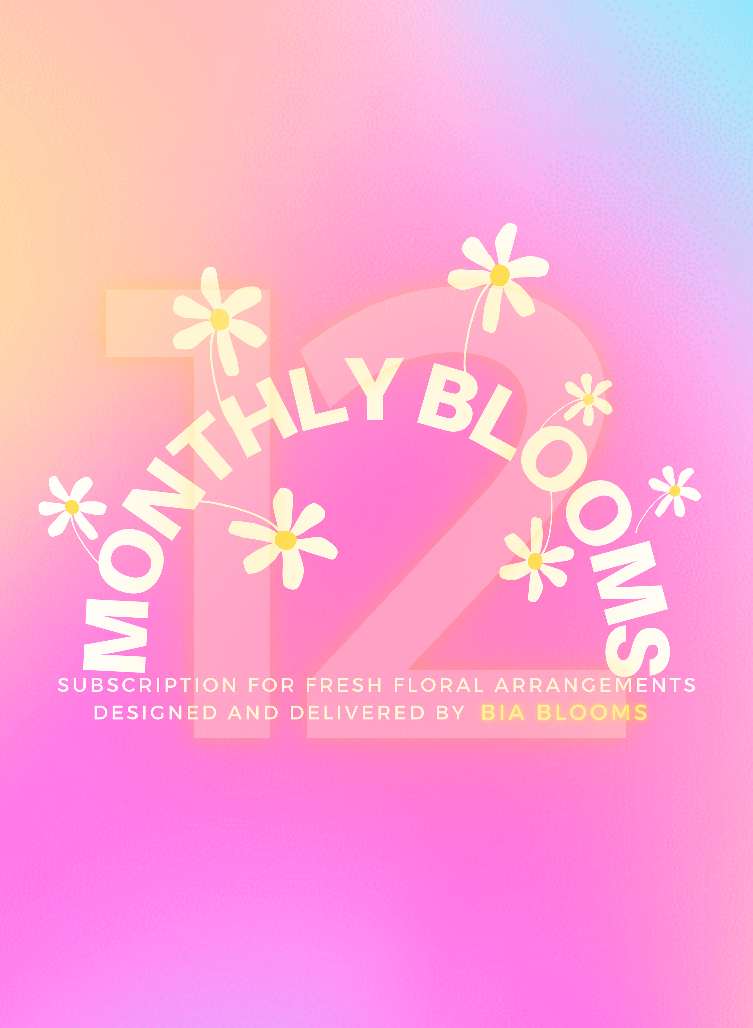 ORDER FLOWERS ✿ SHOP BIA BLOOMS Colorful Floral Arrangement from $158.00 Earthy Floral Arrangement from $158.00 Monthly Bloom Subscription from $500.00